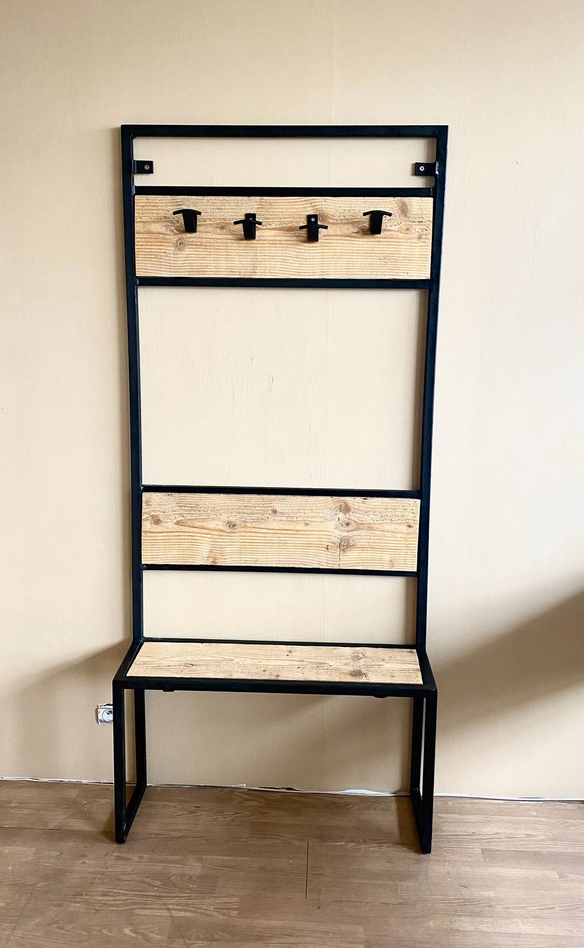 Le meuble d'entrée porte manteau sur mesure que nous vous présentons incarne l'esthétique brute et sophistiquée du style industriel, alliant la chaleur du bois à la robustesse du métal noir. Doté de 4 crochets pratiques et d'un design moderne, ce meuble offre une solution fonctionnelle et esthétique pour accueillir vos effets personnels à l'entrée.